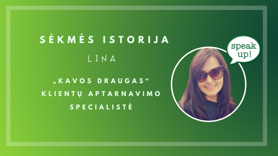 Lina dirba „Kavos draugas“ įmonėje klientų aptarnavimo srityje ir per du metus vykusius anglų kalbos kursus ne tik įveikė kalbos barjerus ir baimes, bet taip pat įgavo dar daugiau pasitikėjimo savimi vartoti užsienio kalbą darbe ir laisvalaikiu. Šiandien galime drąsiai teigti, kad Lina ne tik „Kavos draugė“, bet taip pat ir „Speak Up“ mokyklai brangus ir pasididžiavimą keliantis žmogus!